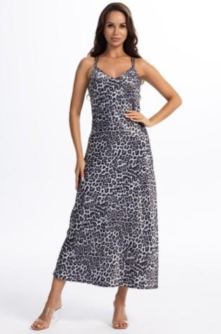 Длинная сорочка Mia-Amore без подреза на тонких регулируемых бретелях выполнена из смесового шёлка с анималистичным принтом. Акцентом сорочки является эффектная открытая спинка с перекрестием.