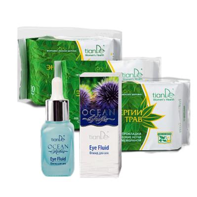 Секрет женской уверенности в себе – качественный уход и надежные средства гигиены. Хиты ассортимента TianDe – прокладки «Энергии трав» с фитомембраной, которые заботятся не только о женском комфорте, но и об отличном самочувствии. Приобретай весь набор, а бонусом забирай флюид для век с эффектом лифтинга, чтобы твой взгляд излучал лишь счастье!
