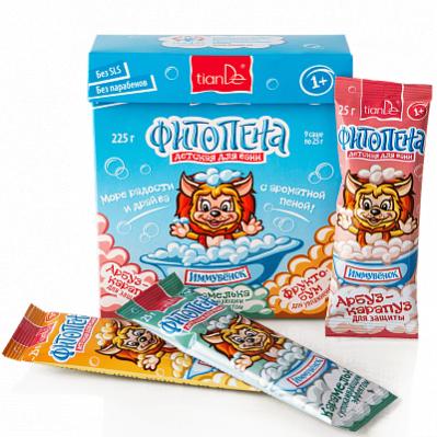 - «Карамелька» с успокаивающим эффектом для восстановления кожи и расслабления после активного дня маленьких непосед. Фитопену можно использовать и в качестве геля для душа. Продукт в удобном формате: 1 саше – одно применение, удобно брать с собой, не нужно думать, сколько средства использовать. Пена создана для малышей от 1 года, но понравится и взрослым!