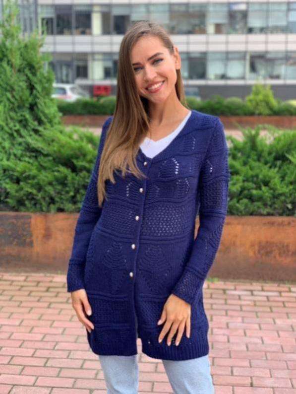 Кардиган хорошо тянется и идет в одном размере 42-50 Состав: 70% шерсть, 30% акрил Длина кардигана 78см Ширина в области груди 54см Длина рукава от плеча 59см Параметры модели на фото: Рост 174 см Обхват груди 87 см Обхват талии 63 см Обхват бедер 90 см Носит размер 42-44