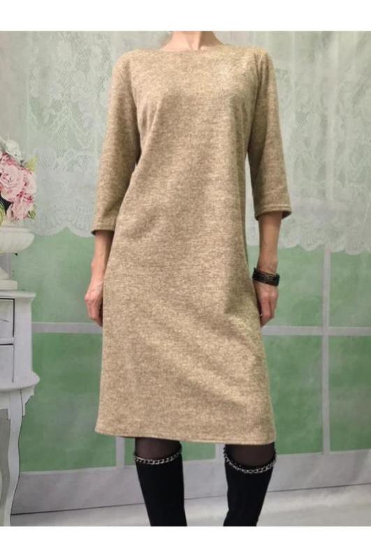 Мягкое трикотажное платье из двухслойной(цветной верх, трикотажная изнанка)ткани классического кроя.