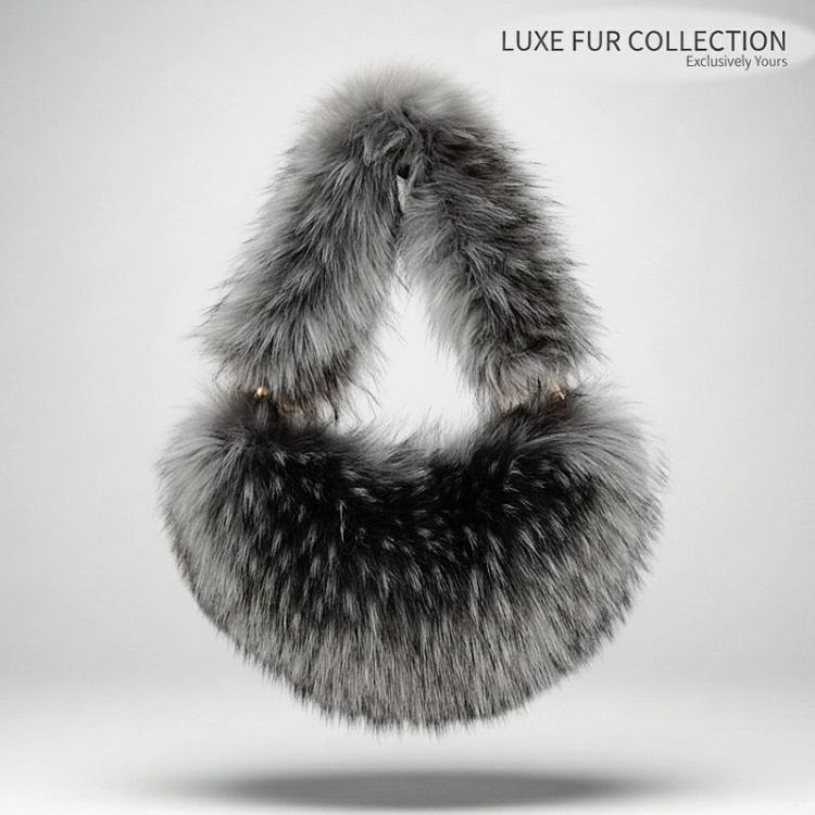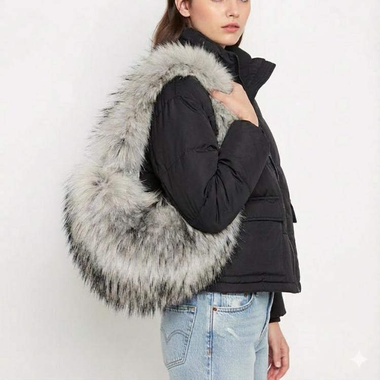 Женская сумка-хобо из искусственного меха под лису. Форма мягкая, объемная, с плавным изгибом ручек. Длина ручек позволяет носить сумку как на плече, так и на локте.