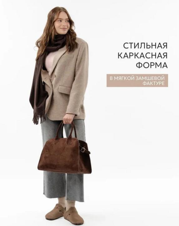 Стильная женская сумка-шоппер из замши.