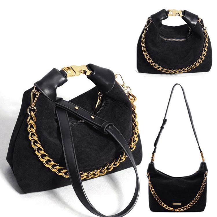 Женская сумка-трансформер с цепочкой из замши. Элегантная коричневая сумка из замши с золотистой цепочкой.