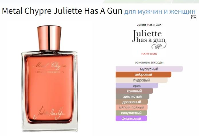 Легкая дымка аромата Juliette Has A Gun Metal Chypre сумеет свести с ума даже наиболее требовательных и искушенных представителей обоих полов. Освежающие ноты зеленого бергамота удачно переплетаются с пикантной пряностью розового перца. Легкая горчинка смолистого пачули великолепно сочетается с тяжелыми аккордами натуральной замши. Заманчивая амбра вкупе с благоухающим ирисом заполняют сердце парфюмерной композиции. Древесные аккорды восточного амброксана в гармоничном соединении с дымчатыми бобами тонка отвечают за невероятное послевкусие. Соблазнительный белый мускус расставляет окончательные штрихи в умопомрачительной картине. Обаятельные, миловидные барышни и солидные, харизматичные мужчины сочтут за честь дополнить свой прелестный вечерний образ ароматом Juliette Has A Gun Metal Chypre.
