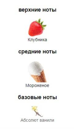 Ароматическая композиция начинается с взрыва сочной лесной клубники, вызывающей свежесть созревших на солнце летних фруктов. Сердце парфюма раскрывает насыщенные взбитые сливки, добавляя тонкую и соблазнительную сладость. В базовом аккорде оттенок шелковистой ванили завершает композицию, оставляя теплое и неотразимое впечатление. Шелковистый, как взбитые сливки, нежный фруктовый аромат обладает длительным шлейфом, приглашающим насладиться восхитительным летним отдыхом.