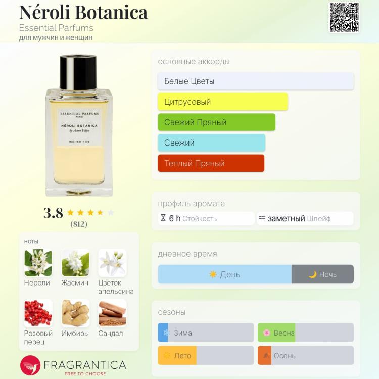 Парфюм, который получился в итоге, действительно андрогинный, а ещё чуть пряный и очень свежий. Специи (розовый перец, имбирь, куркума) сочетаются здесь с горечью петитгрейна, который, в свою очередь, подчёркивает зелёные грани нероли. Куркума добавляет довольно оригинальный, слегка 'шершавый' оттенок, усиливая бодрящий характер верхних нот.