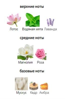 — гласит официальный релиз. Дополнительные ноты композиции включают лотос, мяту, розу, амбру, кедр и мускус.