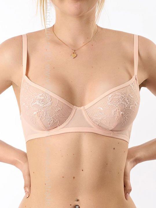 Бюстгальтер-триангул с формованной чашкой, без костей, без пуша. Усилен боковыми костями. Отстегивающиеся бретели. Выполнен из кружева. Застежка в 2 ряда на 3 позиции. Коллекция "