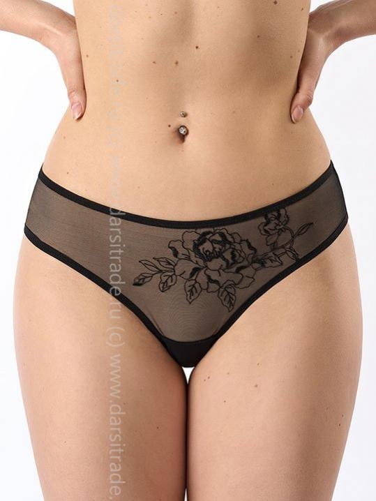 Трусики-бразильяна. Выполнены из микрофибры и кружева с растительным орнаментом. Коллекция "