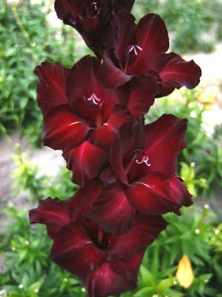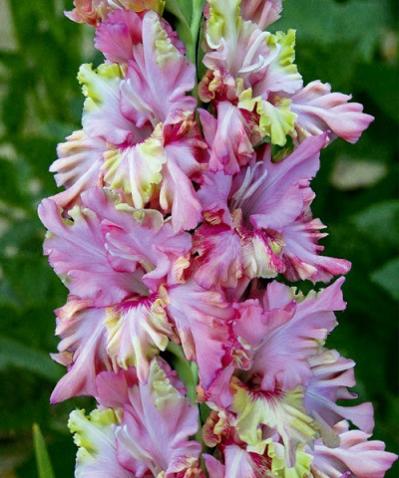Гладиолус – клубнелуковичное растение высотой 50-150 см с вертикальным стеблем и линейными или мечевидными листьями. Цветки воронковидные, собраны в колосовидное соцветие до 80 см длиной, самых разнообразных окрасок, могут быть простыми или гофрированными.Месторасположение: хорошо освещенные, защищенные от ветра участки.Почва: суглинистые или супесчаные, достаточно дренированные со слабокислой реакцией.Посадка: луковицы высаживают, когда почва на глубине 10-12 см прогреется до температуры 8…10 0С. Слой почвы над взрослой луковицей должен быть около 8-10 см. Мелкие клубнелуковицы высаживают через 5-10 см друг от друга, крупные – через 10-15 см.Уход: всходы желательно замульчировать торфом слоем 2-3 см. В течение лета растениям необходимо обеспечить регулярный полив, рыхление и 2-3 подкормки минеральными удобрениями. Срезку лучше проводить утром или вечером. В открытом грунте растение не зимует. Луковицы выкапывают осенью до наступления устойчивых холодов, просушивают и хранят в сухом прохладном месте.Использо
