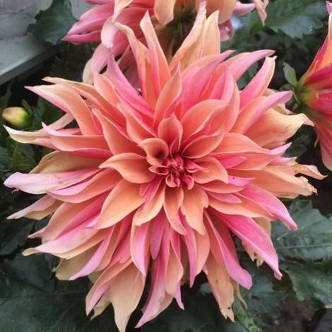Георгина Ненекази бахромчатая– оригинальный сорт с роскошными соцветиями лососе-желтого цвета. Высота растения составляет 90-120 см, размер цветка 15-18 см. Соцветия очень пышные и сильно махровые, состоят из изящных скрученных лепестков. У основания лепестки насыщенно-желтые, а ближе к краю становятся нежно-розовыми. Цветет многолетник обильно и долго с июля по сентябрь. В упаковке 1шт
