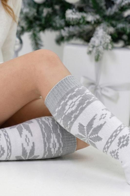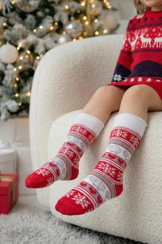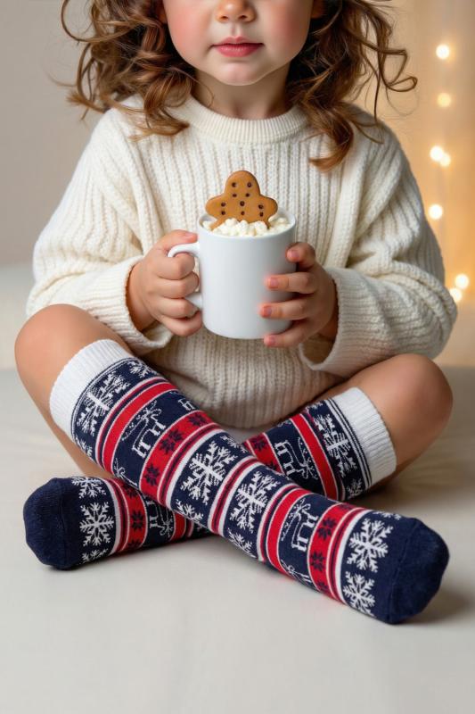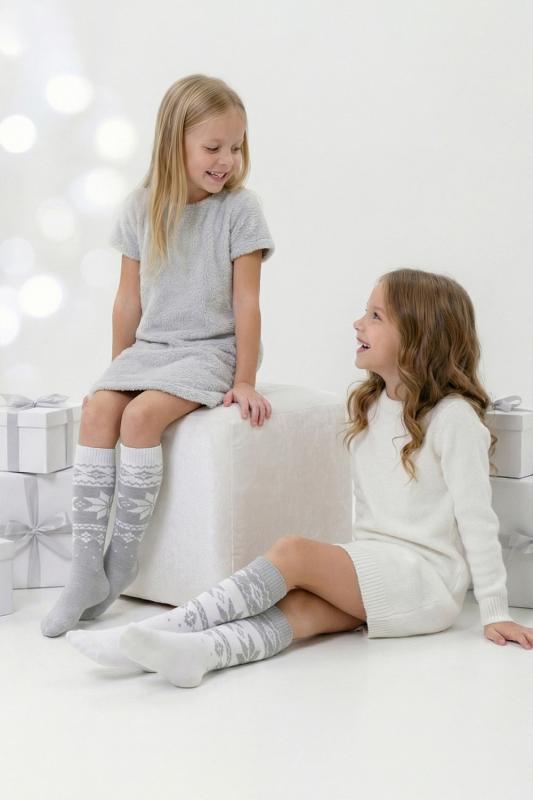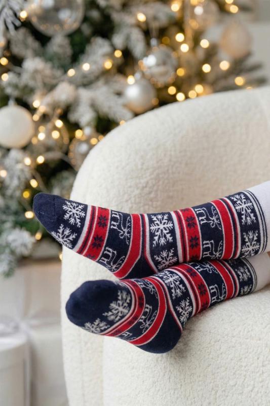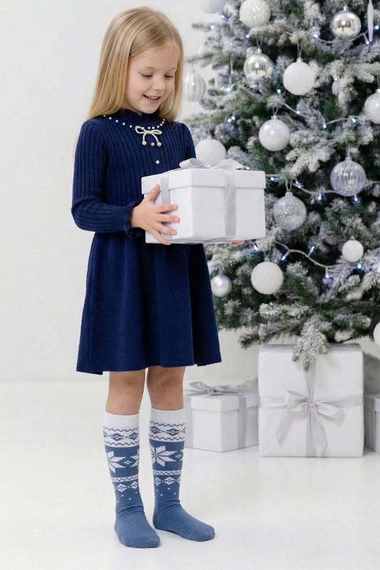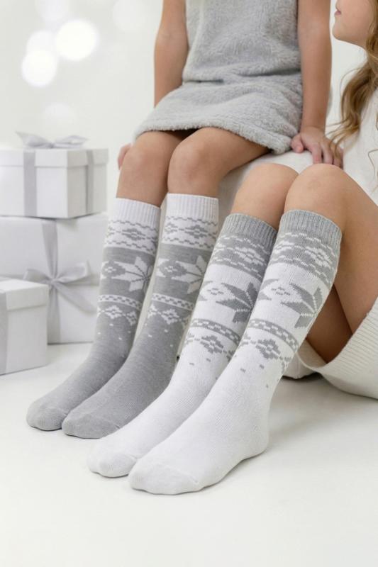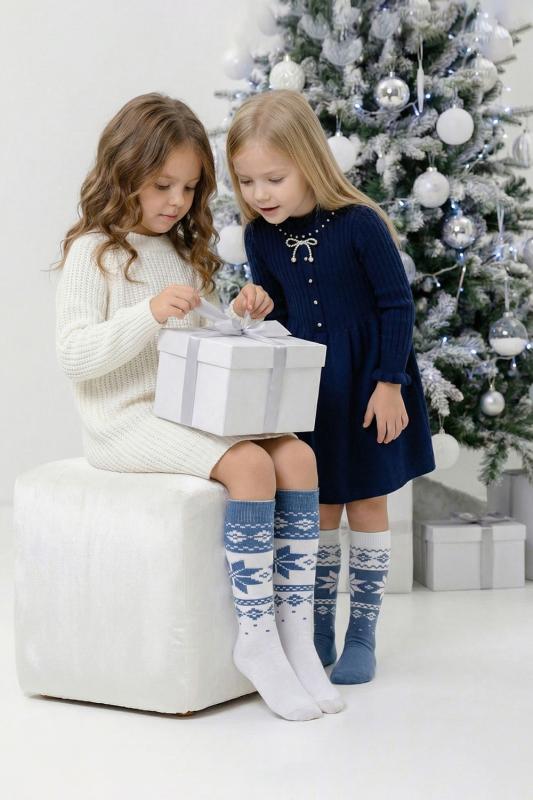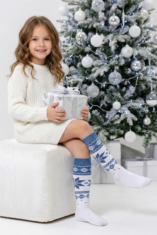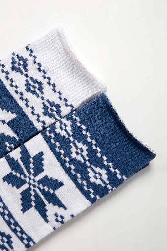 Очаровательные хлопковые гольфы отлично подойдут для встречи Нового года в семейном кругу или тематических фотосессий. Носки с новогодним рисунком это отличный сувенир друзьям, детям и коллегам. Благодаря удобной упаковке, можно подарить каждую пару отдельно. Новогодний принт на носках задает веселое настроение и притягивает взгляды окружающих. Высокое качество нитей сохраняет форму и цвет после стирки, а также препятствует образованию катышек. Такой новогодний подарок будет приятно получить и подарить! В набор входят 2 пары разных гольфов определенной расцветки на выбор - синей или серой.