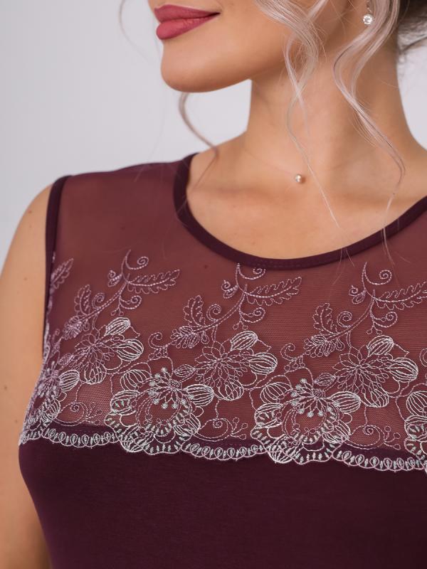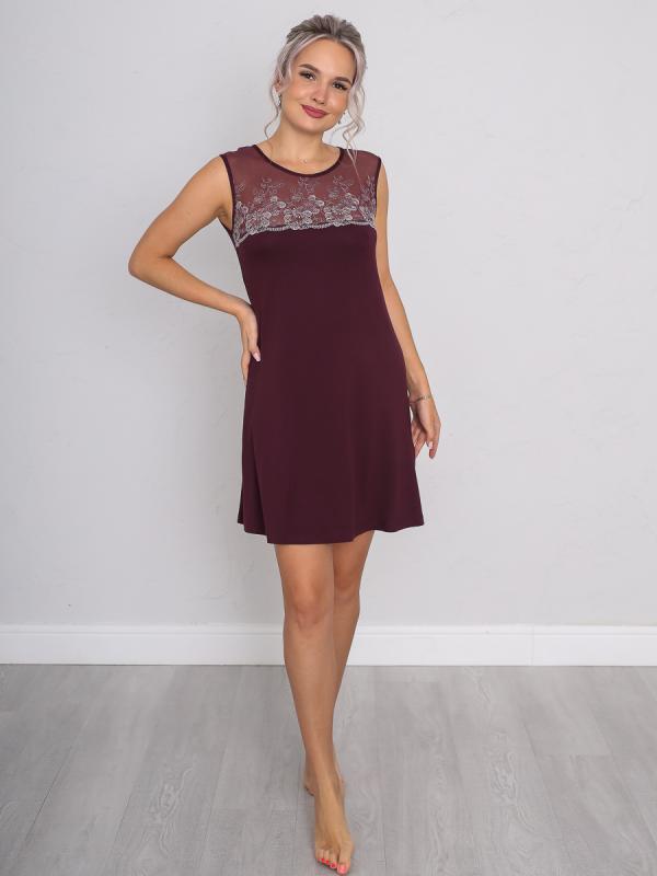 Ночная сорочка женская без рукава - идеальное решение для женщин и девушек, которые ценят комфорт и стиль. Ночнушка короткая, выполнена из вискозного полотна, состав ткани (92 % вискоза и 8% эластан) и обеспечивает оптимальный уровень воздухопроницаемости, позволяя коже дышать во время сна. Главная особенность этой сорочки - вырез горловины с округлой формой, который украшен сеткой, выполненной из высококачественного кружева премиум класса и прекрасно подчеркнет Вашу женственность. Это добавляет модели нежности и эле