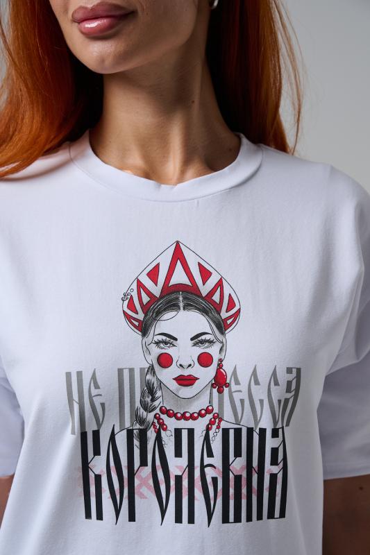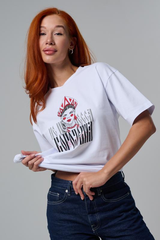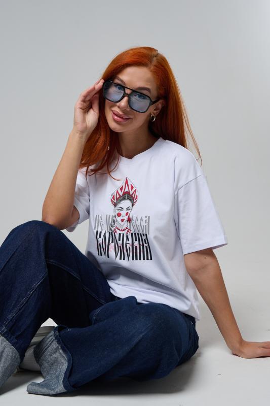 Представьте: вы — королева своего стиля, а на груди — императрица! Наша белоснежная oversize-футболка превращает повседневность в сказку с долей иронии. Мягкий хлопок дарит непревзойденный комфорт: дышащий, не липнет к телу и идеально сидит на любой фигуре, подчеркивая свободу и расслабленность. Сочетайте с джинсами, шортами или даже под легкий жакет — подойдет для прогулок, встреч или фестивалей.