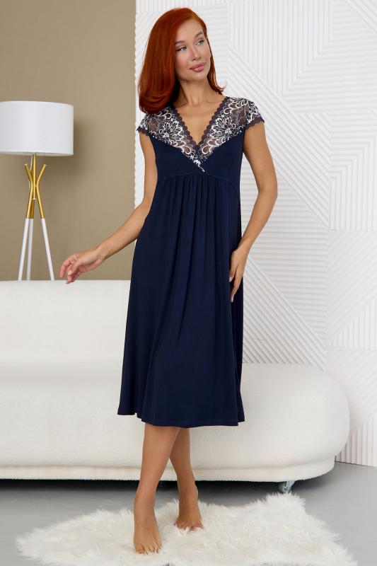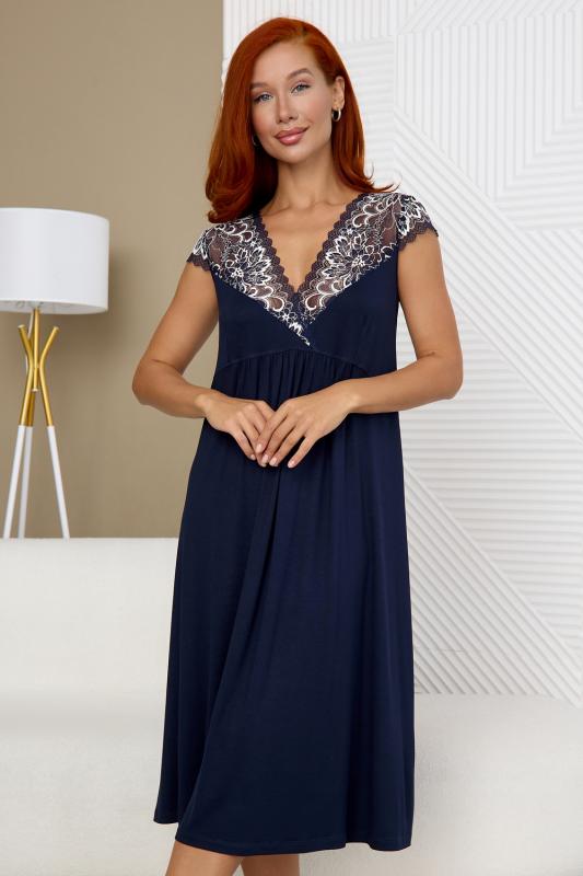 Ночная сорочка женская длинная из вискозного полотна. Ночнушка А-силуэта полуприталенного кроя. Эффектная и стильная рубашка для сна и отдыха – отличный наряд для дома. Рукав крылышком и глубокий вырез горловины сделаны из эластичного кружева. Кружевной вырез подчеркивает зону декольте. Состав ткани 92 % вискоза и 8 % эластан. Ночнушку удобно надеть и для сна и использовать как домашнее платье. Натуральная шелковистая ткань позволяет коже дышать, превращает сорочку в комфортную одежду для дома. Эластичное и эффектное