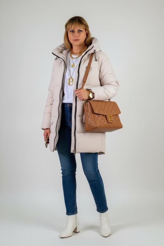 Стильная Куртка с меховым воротником арт.6677 — это идеальное сочетание модного кроя, функциональности и максимального тепла для зимы и «евро-зимы». Выполненная из плотной матовой ткани, куртка надёжно защищает от ветра и осадков, а грязь и волосы с неё легко стряхнуть: материал не притягивает загрязнения и сохраняет безупречный внешний вид на протяжении всего сезона. Ключевая деталь – съёмный воротник из качественного искусственного меха белого контрастного цвета. Он придаёт образу н