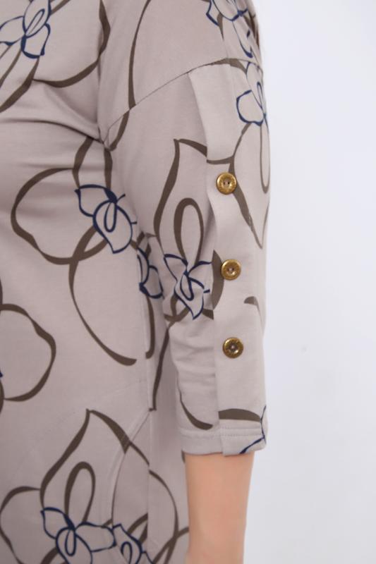 Это стильное и комфортное решение для летнего гардероба. Сшитое из 100% хлопка, оно подарит вам приятные тактильные ощущения и обеспечит комфорт в жаркую погоду. Модель без застежки с рукавом 3-4 и карманами в шве удобна в носке и подходит для повседневных образов. Абстрактный рисунок и декоративные пуговицы добавляют платью оригинальности, а тип ростовки для невысоких девушек подчеркнет вашу фигуру.