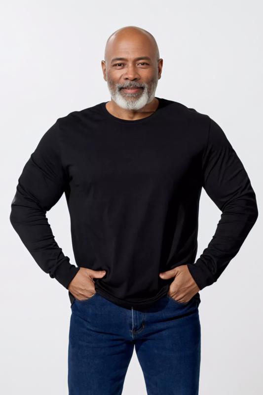 Лонгслив снова в моде и прочно обосновался в базовом гардеробе современного человека. Удобная трикотажная кофта представляет собой футболку с длинным рукавом, которую можно использовать как самостоятельный элемент, так и носить под пиджак, толстовку или рубашку. Лонгслив выполнен из высокоплотного хлопкового трикотажа и является невероятно комфортным и удобным. Футболка с длинными рукавами имеет прямой базовый крой и классическую линию плеча. Лонгслив - это неформальный стиль, когда на футболку можно надеть клетчатую рубашку и сочетать с кедами и джинсами. За счет натуральной ткани лонгслив можно носить в качес