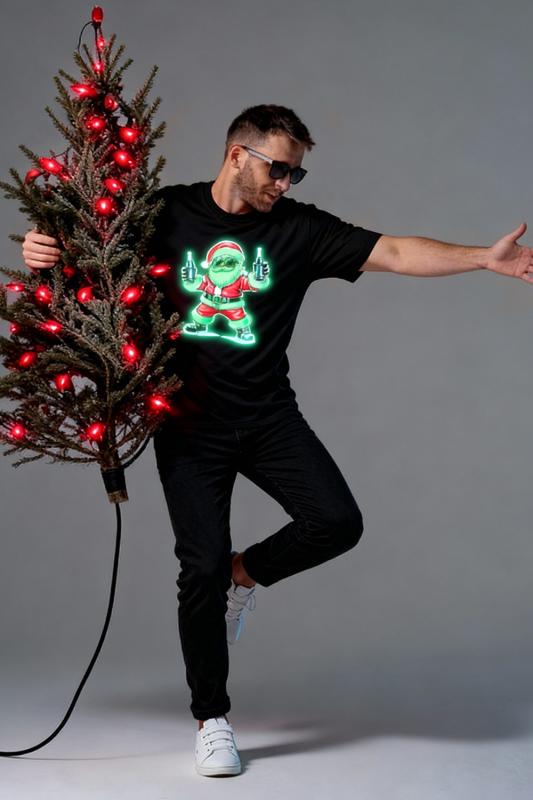 Представьте: Новый год, вечеринка в разгаре, а вы в стильной красной футболке с Сантой, который не просто раздает подарки, а зажигает на полную! На одной версии – Santa DJ в наушниках, миксует треки за пультом. На второй – Santa Rocker с гитарой, в прыжке, готовый к соло! Дизайн в белом и красном – яркий, юмористичный и супер-актуальный для праздников. Изготовлены из мягкого хлопка (100% cotton) – комфортные, не линяют после стирок, подходят для мужчин и женщин, стиль для casual-лука с джинсами или под пуховик. Идеально для музыкантов, фанатов рока или тех, кто любит добавить перчинки в новогодний образ!