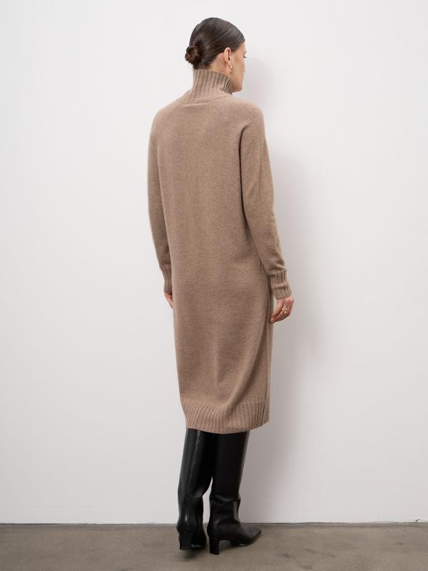 Платье выполнено в лаконичном дизайне с длинными рукавами и аккуратной горловиной. Эластичные манжеты и нижний край обеспечивают комфортную посадку и аккуратный внешний вид. Минималистичный стиль подчёркивает премиальность материала. Посадка и комфорт: