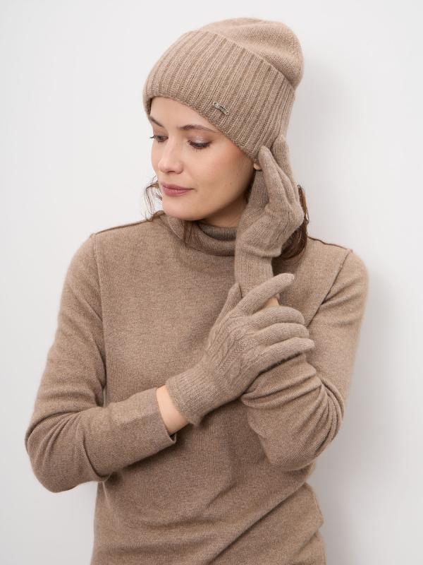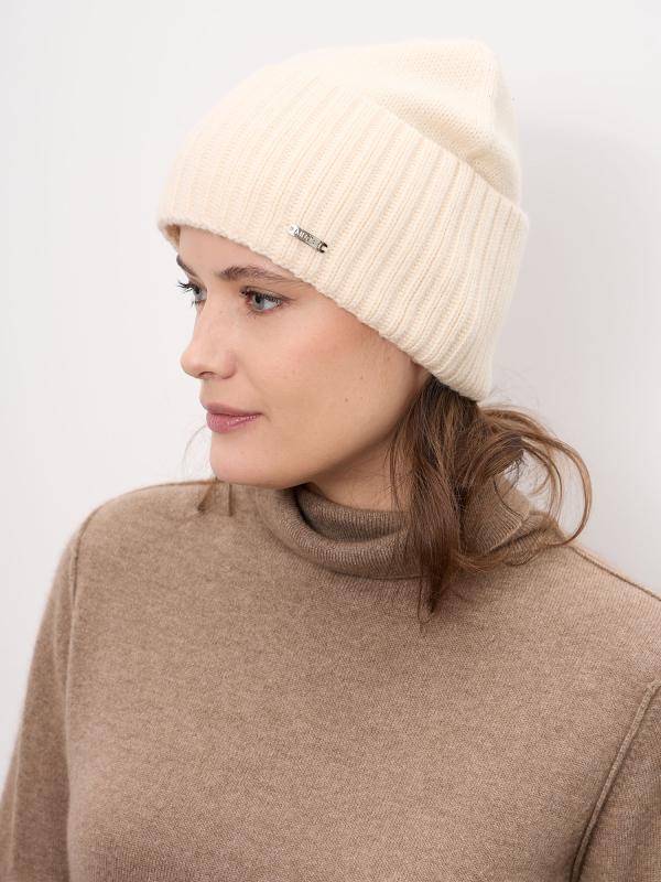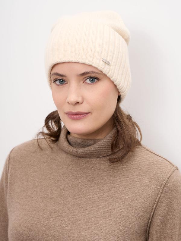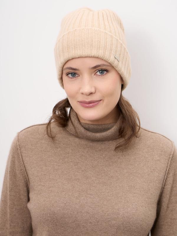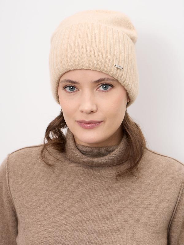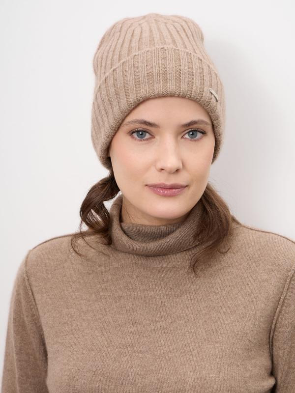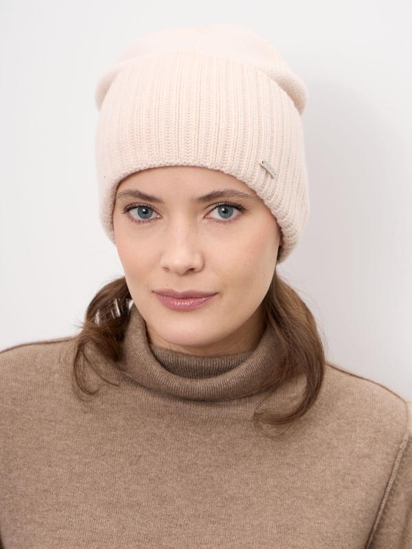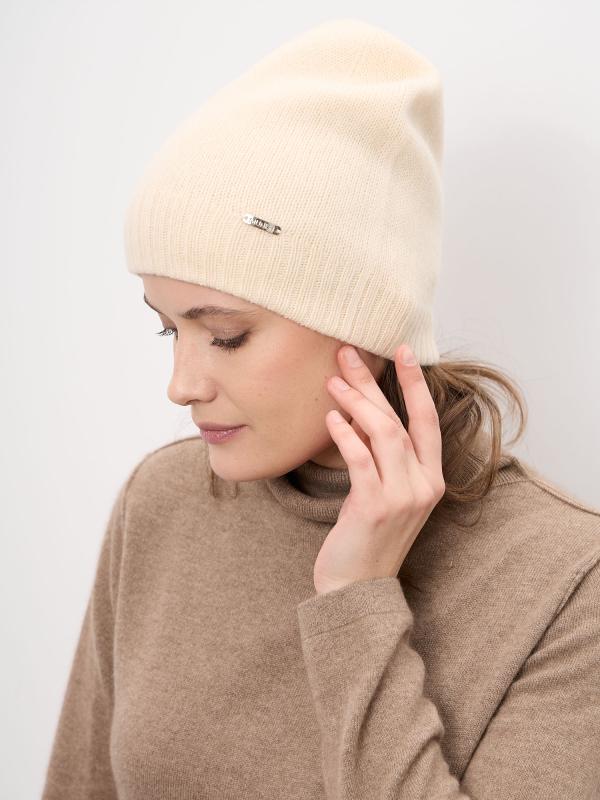 Лаконичная женская шапка из натурального кашемира — идеальный выбор для холодного сезона. Модель выполнена в универсальном бежевом оттенке, который легко сочетается с базовым и классическим гардеробом. Мягкая фактура и аккуратная форма обеспечивают комфортную посадку и элегантный внешний вид. Материал: