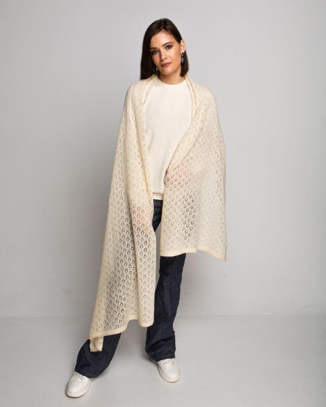 Изготовлена из натурального кашемира — одного из самых ценных и мягких видов шерсти. Волокно отличается лёгкостью, высокой теплоизоляцией и деликатным прикосновением к коже.