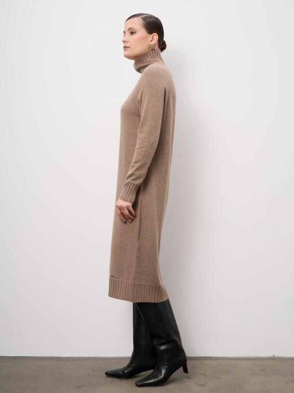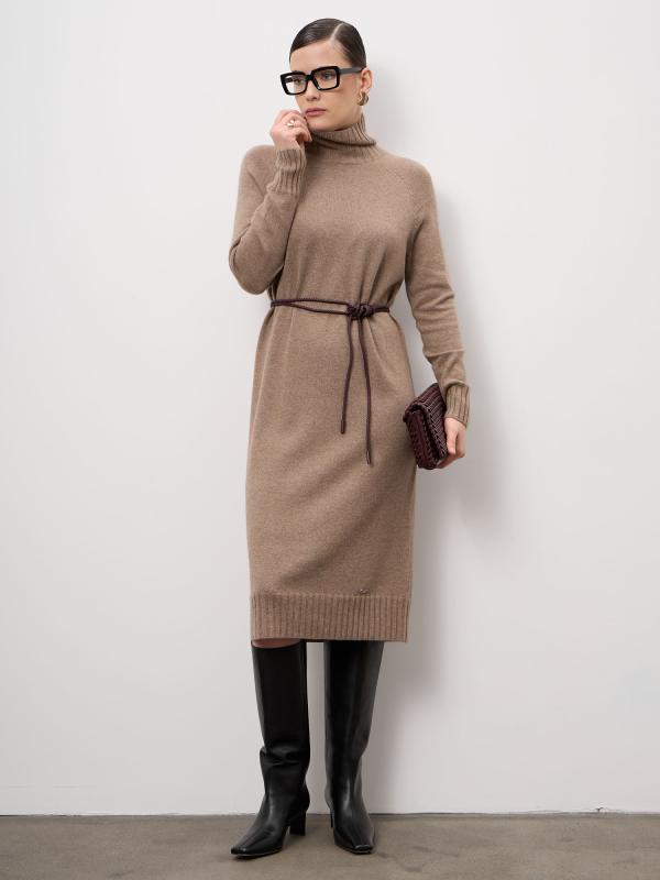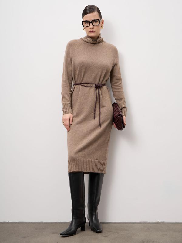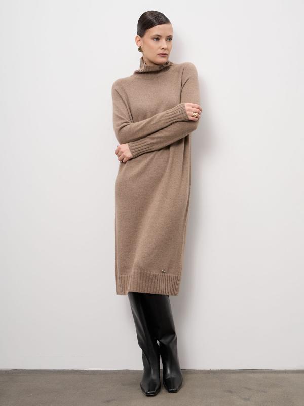 Элегантное платье из натурального кашемира в оттенке капучино — воплощение сдержанной роскоши и комфорта. Модель прямого силуэта мягко повторяет линии фигуры, создавая утончённый и женственный образ. Благородный цвет легко вписывается в базовый гардероб и подходит для любого сезона. Материал:
