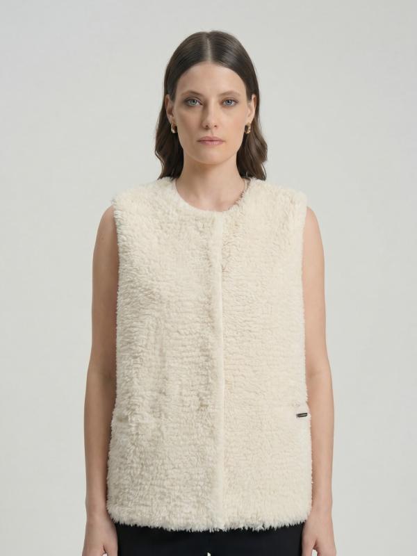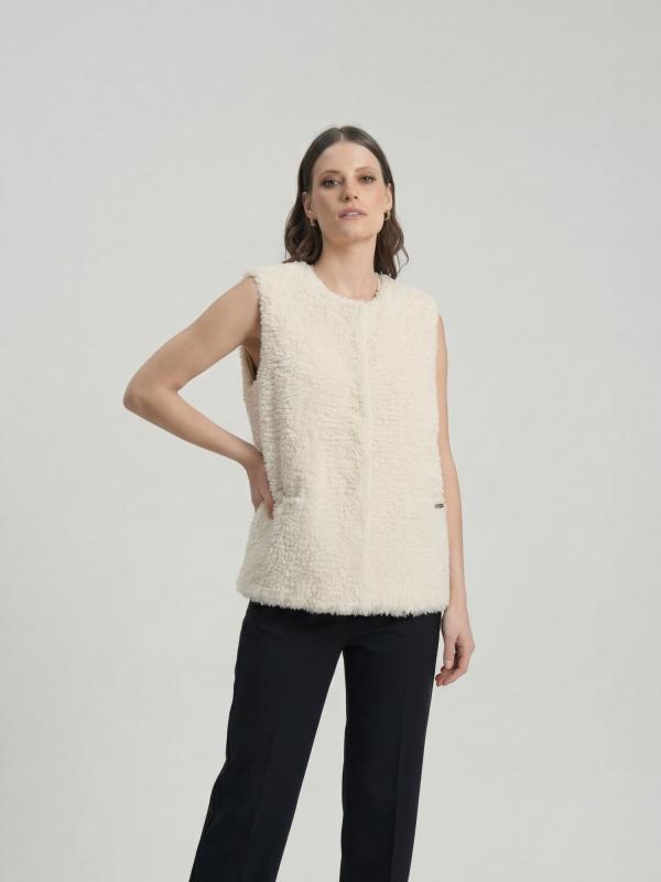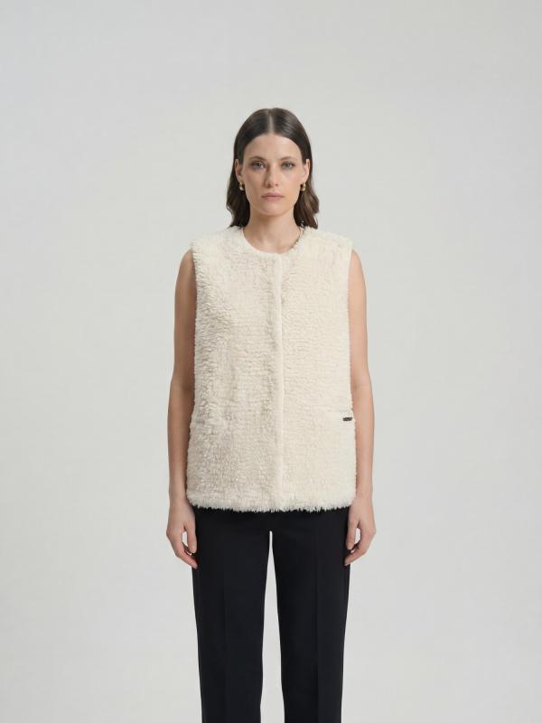 Уютный жилет из 100% монгольского кашемира в мягком кремовом оттенке — идеальное сочетание тепла, лёгкости и природной элегантности. Модель выполнена из пушистого кашемира с эффектом «овечьей шерсти», что придаёт изделию объём и особую фактуру. Детали и дизайн Прямой крой и мягкая текстура делают жилет комфортным в носке. В конструкции предусмотрены боковые карманы и скрытая застёжка, что подчёркивает минималистичный и современный стиль. Тёплый кремовый оттенок добавляет образу свежести и лёгкости. Как и с чем носить С тонким кашемировым или хлопковым джемпером — уютный повседневный вариант. С рубашкой и юбкой миди — элегантный образ для офиса или прогулки. С широкими брюками и ботинками — актуальный городской стиль в духе casual chic. Под пальто или тренч — дополнительный слой тепла без утяжеления силуэта. Кремовый оттенок гармонично сочетается с шоколадным, графитовым, серым и карамельным, подчёркивая природную палитру и создавая ощущение мягкого уюта. Уход Ручная стирка в холодной воде или профессиональна