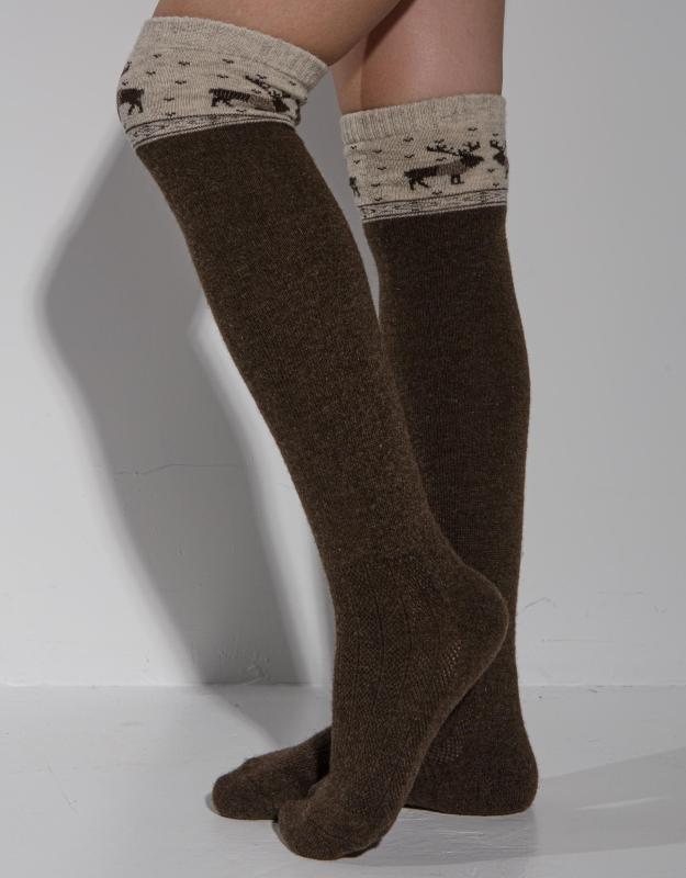 Теплые гольфы из 100% шерсти темно-коричневого цвета с оригинальным рисунком идеально подойдут для прохладных дней. Они обеспечивают надежное сохранение тепла и комфорт благодаря мягкой и дышащей структуре шерсти, а удобная резинка удерживает их на ноге, не создавая дискомфорта. Стильный дизайн с элегантным узором добавит вашему образу уют и изысканность в любое время года.