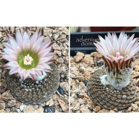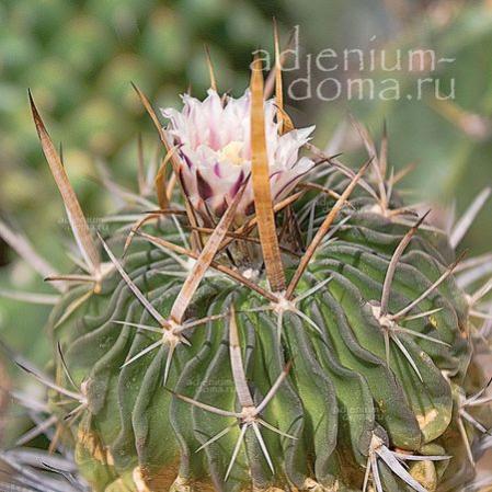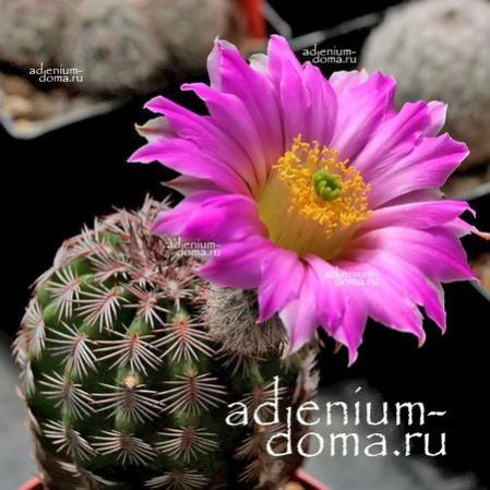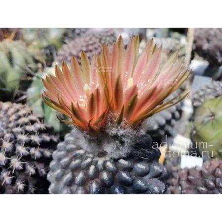 Eriosyce MALLEOLATA - Эриосице молоточковая, Эриозице Маллеолата, Thelocephala, Neochilenia. Описание: Эриосице — род кактусовых растений семейства Кактусовые, включающий около 30 видов, распространённых в засушливых районах Чили и Аргентины. Эти растения приспособлены к экстремальным условиям — палящему солнцу, скудным осадкам и значительным перепадам температуры между днём и ночью. В природе многие виды обитают на каменистых склонах и в трещинах скал, где накопление влаги минимально. Представители рода имеют шаровидную или цилиндрическую форму стебля диаметром 4–12 см, с 13–21 плотным рёбром, разделённым на сжатые складки. Ареолы покрыты густым войлочным опушением, из которых выходят многочисленные колючки — от белых до серых, желтоватых или бурых, прямых, изогнутых либо скрученных. Радиальных колючек обычно 15–40 длиной до 6 см, центральных — 4–20, более мощных. Поверхность стебля матовая, серовато-зелёная, буроватая или с пурпурным оттенком. Корневая система часто реповидная, утолщённая и шишковатая, что