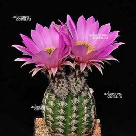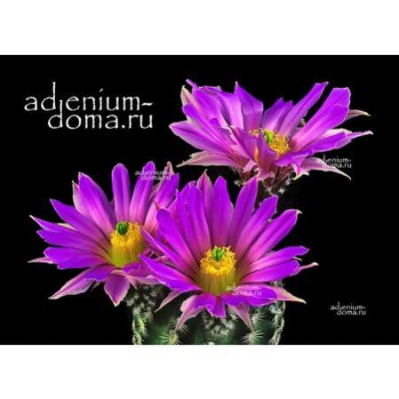 Echinocereus SCHERERI - Эхиноцереус Шерера. Описание: Эхиноцереус включает в себя около ста видов разных по внешнему видов кактусов. Это небольшие растения с цилиндрическим стеблем и колючками гребешками, шаровидные кактусы и крупные ветвящиеся кактусы с мощными колючками. Родина Эхиноцеруса это равнинные пустыни от юга-запада Америки до центральной Мексики. Цветки у этого вида бывают разной величины, а окраска отличается своим разнообразием. Они бывают и красно-фиолетовыми и пурпурными, розовыми, оранжевыми и даже зеленоватыми. Кактусы этого вида нуждаются в прохладной и сухой зимовке. В природе встречаются эхиноцереусы с красивыми колючками либо щетинками, а также менее колючие виды. Эхиноцереус Шерера - отдельно растущий вид с серо-зелеными стеблями цилиндрической формы, достигающими длины 22 см и диаметра около 10 см. На стеблях образуется от двенадцати до восемнадцати ребер. Центральные шипы не развиты, а радиальные шипы состоят из 21-24 ребристых выступов, которые могут быть слегка розовыми или коричне