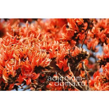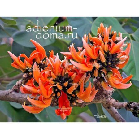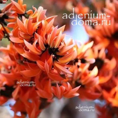 Butea MONOSPERMA - Бутея односемянная, Бутея Моносперма, Бутеа Фрондоза, Пламенное дерево, Butea FRONDOSA, Flame of the Forest. Описание: Бутея - род деревьев и кустарников из семейства Бобовые, включающий 5 видов, распространённых в Южной и Юго-Восточной Азии в Индии, Шри-Ланке, Бирме и Малайзии на засушливых равнинах, холмах и разреженных лесах, часто формируя редколесья и устойчивые сообщества на бедных почвах. Растение приспособлено к сезонному климату, где чередуются влажные и засушливые периоды. Род представлен листопадными деревьями и кустарниками, отличаютщимися мощными и очень ветвистыми стволами. Листья крупные, длинно-стебельчатые, супротивные, полностью раздельные, тройчатые. В конце сухого сезона листья частично или полностью опадают, открывая крупные яркие соцветия на фоне оголённых ветвей. Яркие, похожие на душистый горошек, цветки собраны в конечные кисти или метелки. Плоды состоят из кожистого околоплодника и одного крупного семени. Бутея односемянная – листопадное дерево или крупный кустарн
