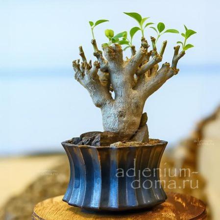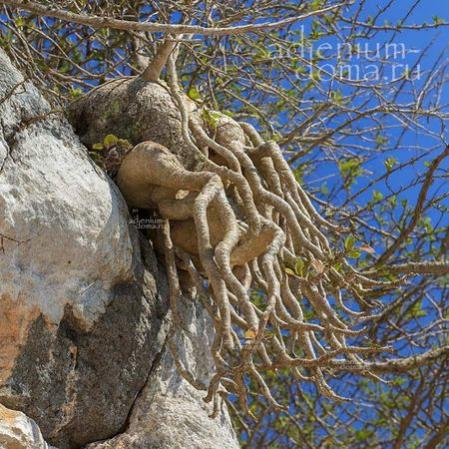 Adenium DHOFARENSE - Адениум дофарский, Адениум Дофаренс, Дофарская розa пустыни. Особенность: Видовой адениум, научно описанный только в 2015 году. Отличается формой каудекса, ствола, листьев и цветов. Adenium DHOFARENSE - Адениум дофарский или Адениум Дофаренс является эндемиком южной части Аравийского полуострова, произрастающий исключительно в горах Дофара (Оман) и на сопредельных территориях Йемена. Этот регион выделяется уникальным туманным климатом под названием '