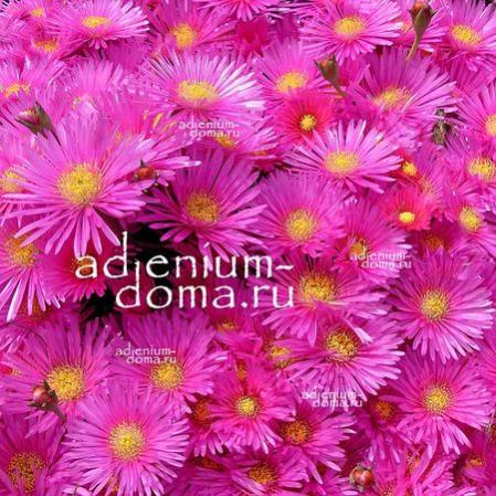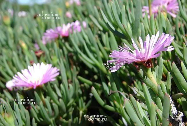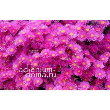Lampranthus ROSEUS - Лампрантус розовый. Описание: Лампрантус - род компактных цветущих суккулентых растений с ползучими или прямостоячими стеблями семейства Аизовые. Род насчитывает более ста видов и ведет происхождение из Южной Африки. Представляет собой невысокое суккулентное растение с поникающими сочными стеблями длиной до 60 см. При контакте с грунтом стебли могут самостоятельно укорениться. Листья сочные, зеленые или серовато зеленые с восковым налетом, цилиндрические или треугольные. Цветы образуются на верхушках стеблей и открываются только в солнечную погоду, в пасмурную остаются полузакрытыми, образуются так обильно, что растения формируют очень красочный ковер. Оттенки цветов включают желтый, красный, малиновый, оранжевый, белый и фиолетовый. Диаметр каждого цветка колеблется от 2 до 5 сантиметров, цветы напоминают маргаритку или ромашку со множеством длинных узких лепестков, центр цветка обычно белого или желтого цвета. Лампрантус розовый - кустистое растение около 15 см высотой. Побеги у молоды