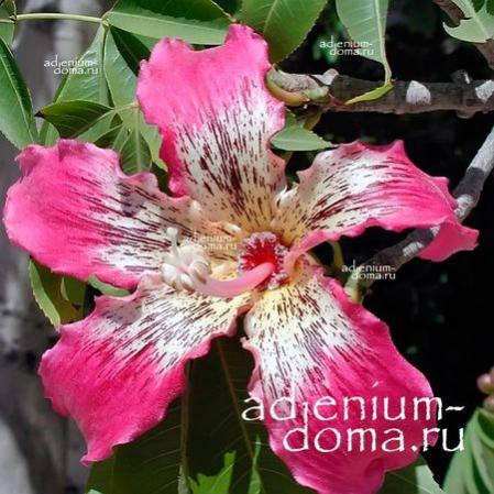 Chorisia SPECIOSA - Хоризия великолепная, Сейба великолепная, Шелковое дерево, Розовое хлопковое дерево, Дерево шелкового волокна. Посев и отзывы покупателей: Viktor Ofcharoff. Можно выращивать в стиле бонсай! Описание: В декоративной культуре известны 2 вида хоризий. Оба вида являются одними из наиболее красивейших деревьев, культивируемых в странах с тёплым климатом. Растения семейства Мальвовые. Оба вида интродуцированы в Израиль. Используются для озеленения скверов, парков, аллей. Мощные шипы, столь характерные для ствола хоризий, начинают появляться в конце второго - на третьем году жизни. Однако встречается довольно много старых деревьев, на которых шипы едва выражены. Цветки, живущие примерно 1 день, практически не имеют запаха. Плод - многосемянная луколицидная коробочка. Мелкие семена для увеличения парусности погружены в большую массу белых или коричневых шелковистых нитей, являющихся производным стенки околоплодника, и внешне очень напоминающих густой хлопок. Этот шёлковый хлопок, выпадающий на ве
