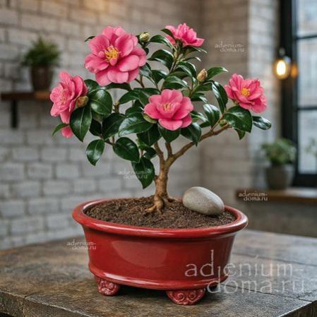 Camellia JAPONICA - Камелия японская. Можно выращивать в стиле бонсай! Посев и отзывы покупателей: Алена Евдокимова. Описание: Камелия - род вечнозелёных растений семейства Чайные. В природе представители рода широко распространены в субтропиках Евразии и Северной Америки, на побережье Чёрного моря в Сочи, но также могут культивироваться, как комнатные или оранжерейные растения по всему миру. Представители рода небольшие кустарники или деревья высотой от 2 до 20 метров. Листья простые, эллиптические до широко- и продолговато-яйцевидных, кожистые, глянцеватые, заострённые или тупые, по одному, иногда по 2-3, очередные на коротких черешках, длиной 3—17 см. Цветки одиночные, диаметром 1—12 см, лепестки сросшиеся у основания, розовые, красные, белые или пёстрые, тычинки многочисленные. Плод — сухая капсула, которая обычно делится на 5 отделений с 8 семенами. Камелия японская - имеет листья многочисленные, очередные, обильно и густо покрывающие ветвистые побеги, темно-зеленые, блестящие, голые, кожистые, яйцевидн