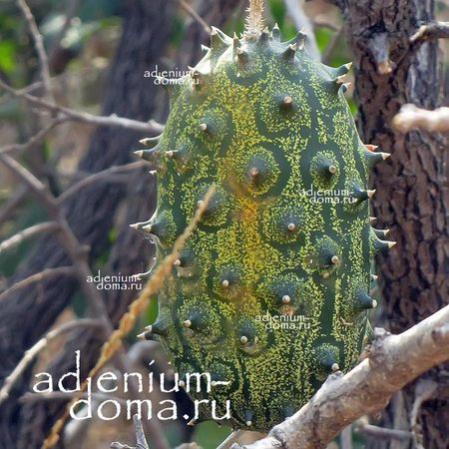 Cucumis METULIFERUS - Кукумис рогатый, Кукумис Метулиферус, Кивано, Африканский огурец, Horned Melon. Описание: Кукумис — род травянистых растений семейства Тыквенные, включающий около 60 видов, распространённых преимущественно в тёплых районах Африки и южной Азии. Наибольшее разнообразие наблюдается в Намибии, Анголе, Ботсване, Южной Африке и сопредельных регионах, где растения встречаются на солнечных равнинах, каменистых склонах и в сухих саваннах. К укоренившимся культурным представителям рода относятся дыня и огурец обыкновенный. Большинство видов — однолетние, реже многолетние травянистые лианы с лазящими или стелющимися стеблями, поднимающимися по опоре с помощью пазушных усиков. Листья крупные, простые, чаще трёх- или семилопастные, иногда угловатые или пальчаторассечённые. Растения однодомные, что обеспечивает обильное плодоношение даже при одиночном выращивании. Цветки жёлтые, одиночные, раздельнополые. Мужские цветки имеют трубчатую или воронковидную чашечку и три свободные тычинки. Женские цветки