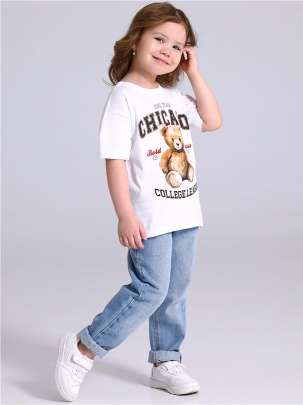 Описание товара: Джинсы для девочки, спереди декорированы рисунками и стразами.***