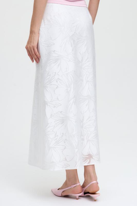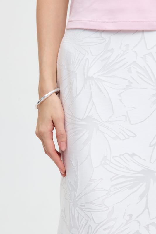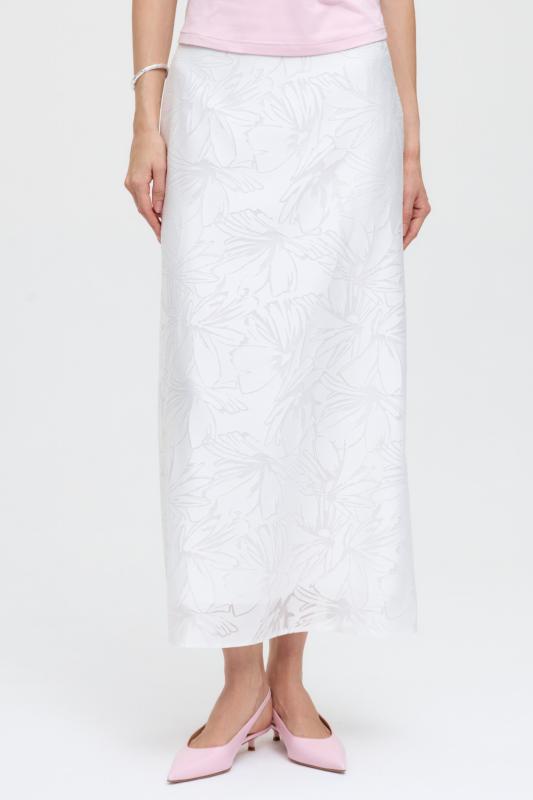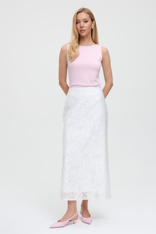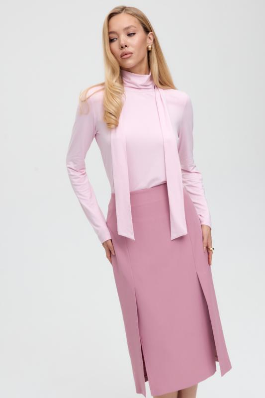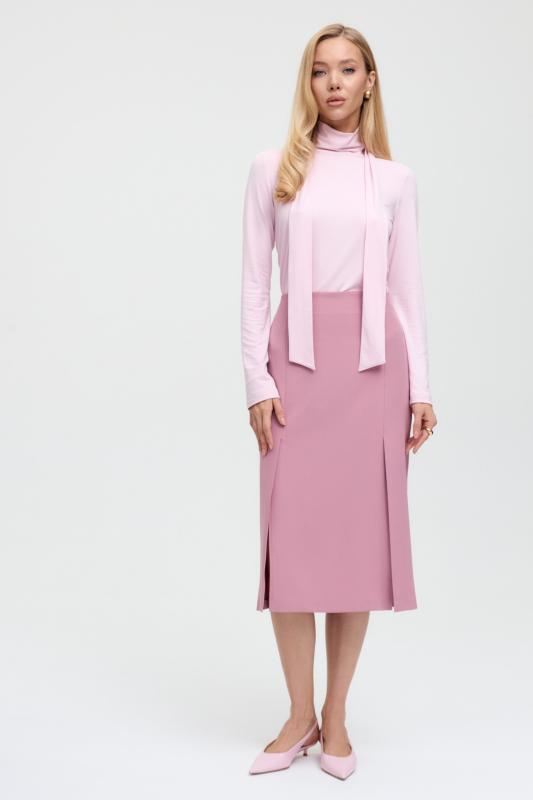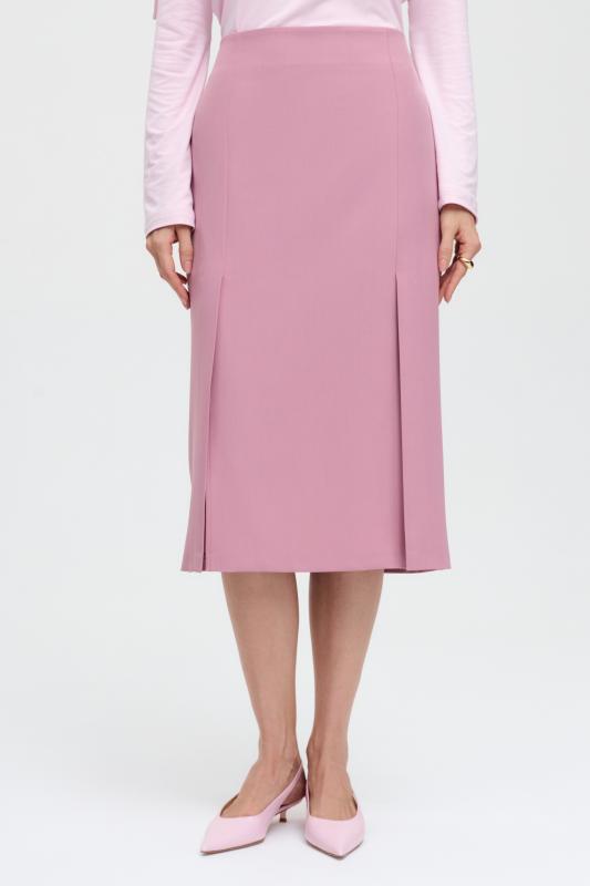 Юбка миди прямого силуэта, на поясе комфортная резинка для лучшей посадки, застежка на потайную молнию, шлица на спинке. Изделие на подкладе.
