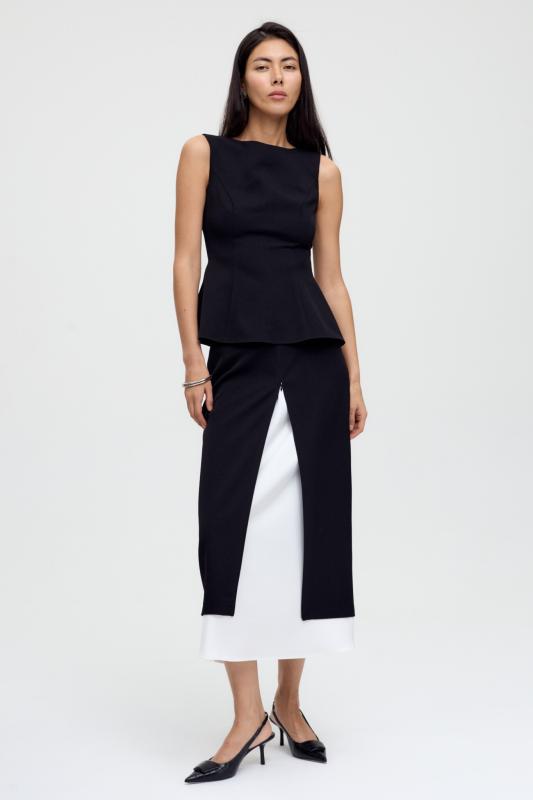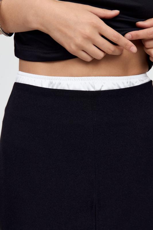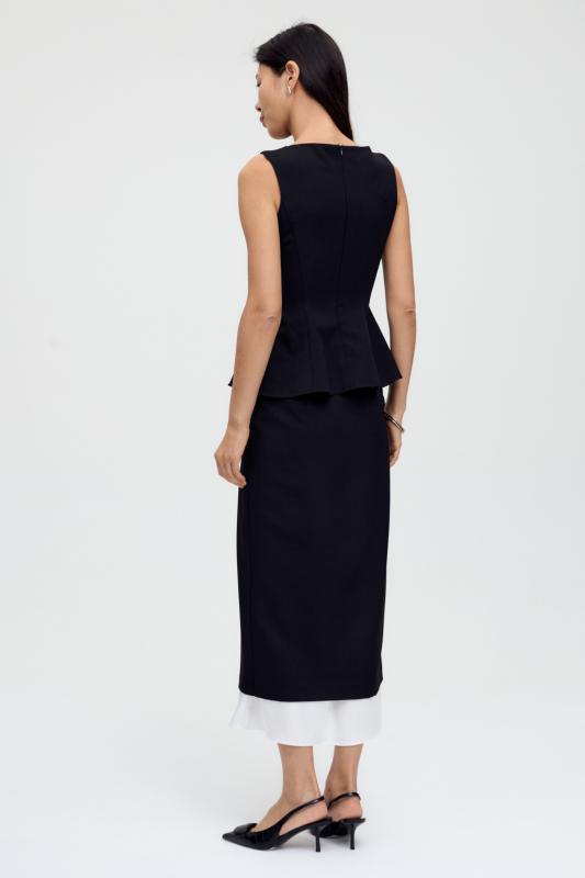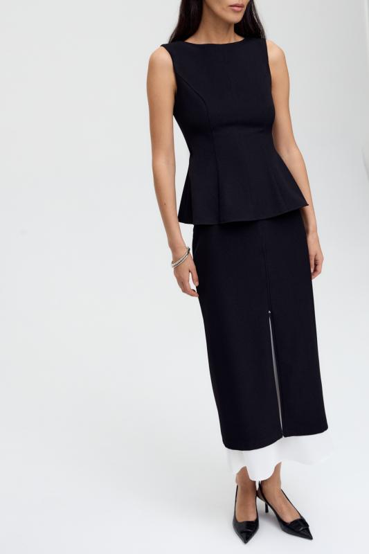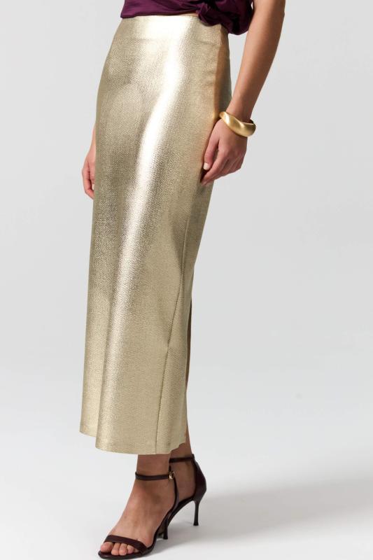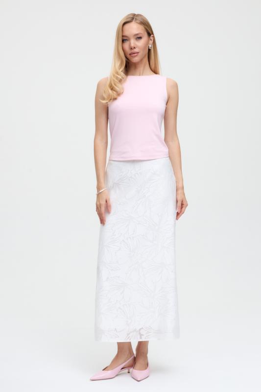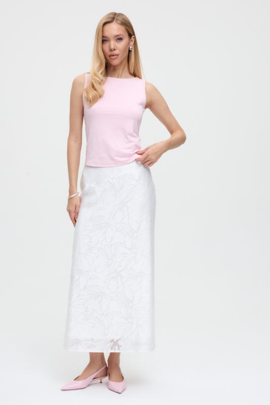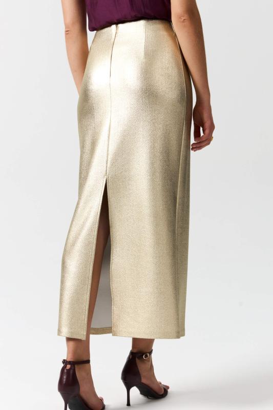 Юбка миди прямого силуэта, на поясе комфортная резинка для лучшей посадки, застежка на потайную молнию, шлица на спинке. Изделие на подкладе.