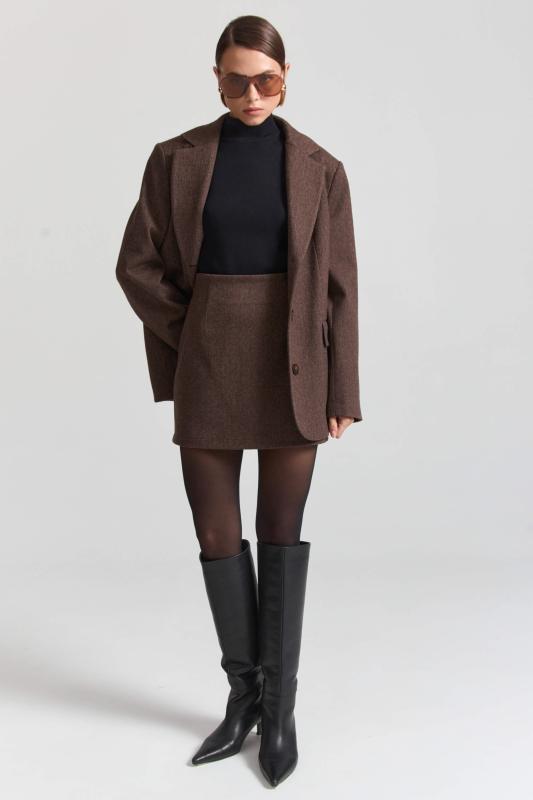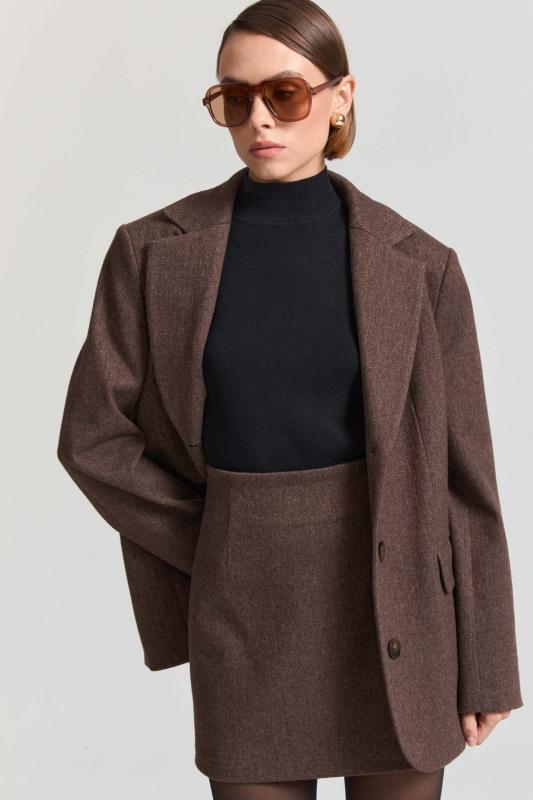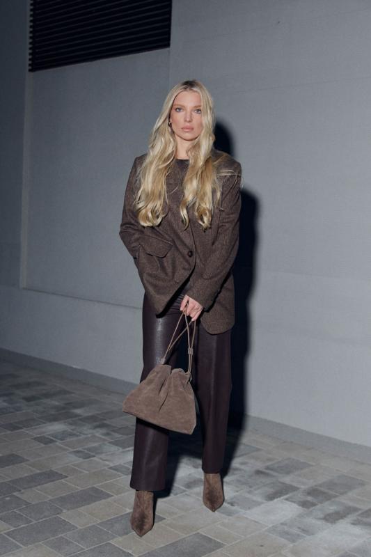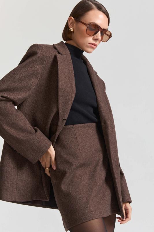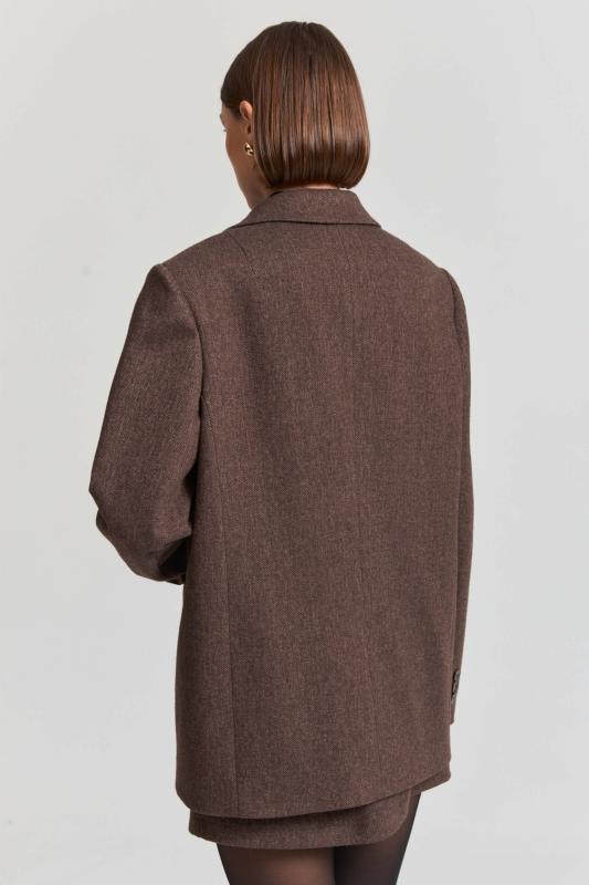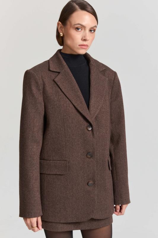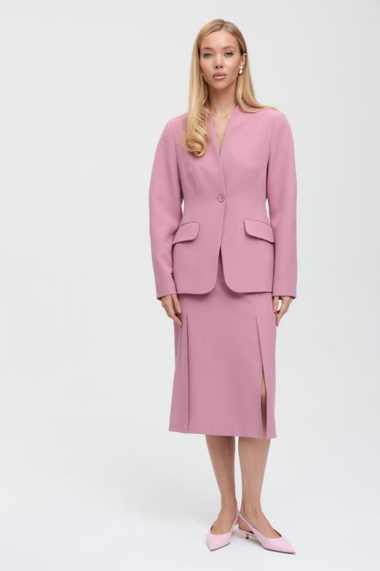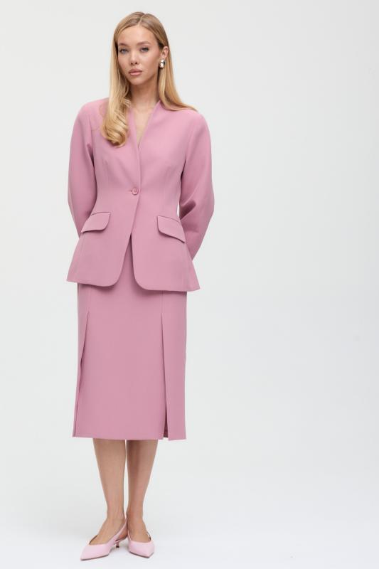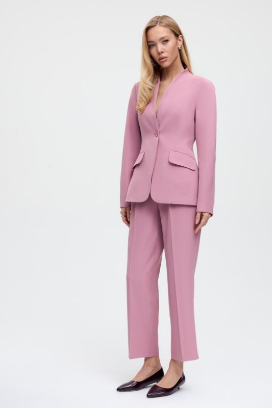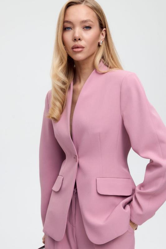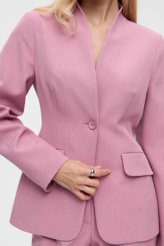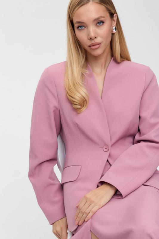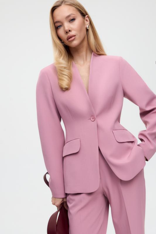 Свободный жакет в трендовом оттенке. Двубортный жакет свободного силуэта. Рукав втачной, присутствуют прорезные карманы с клапанами. По спинке шлица.