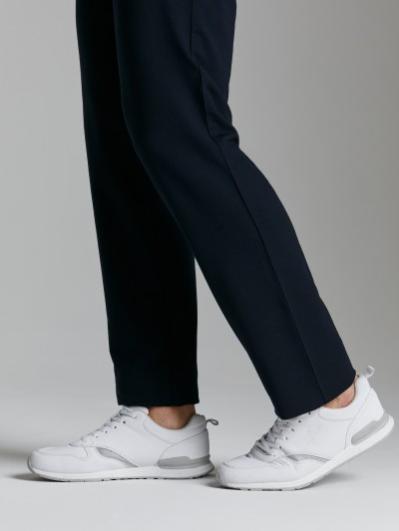 . На левой половине брюк вышивка в цвет основной ткани фирменного логотипа.