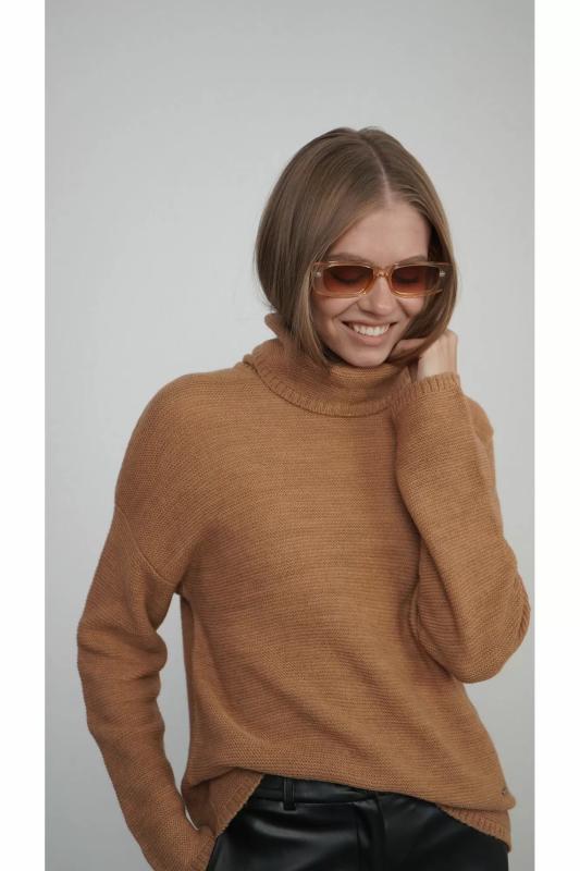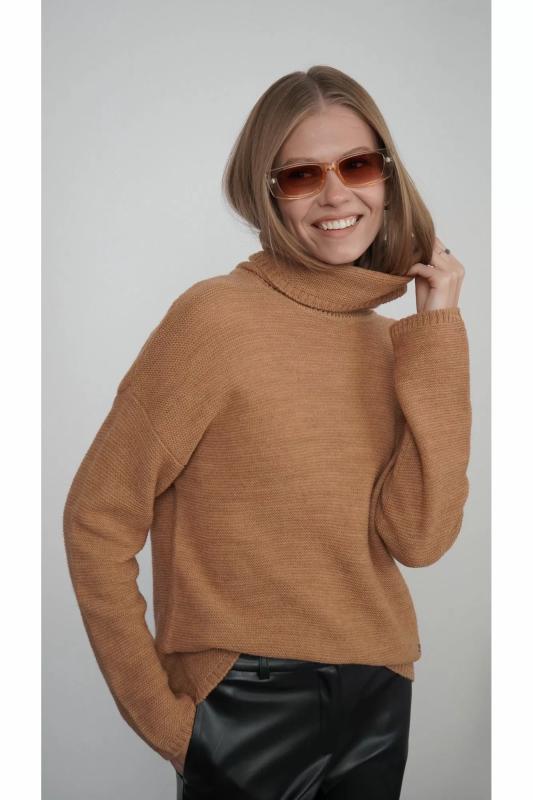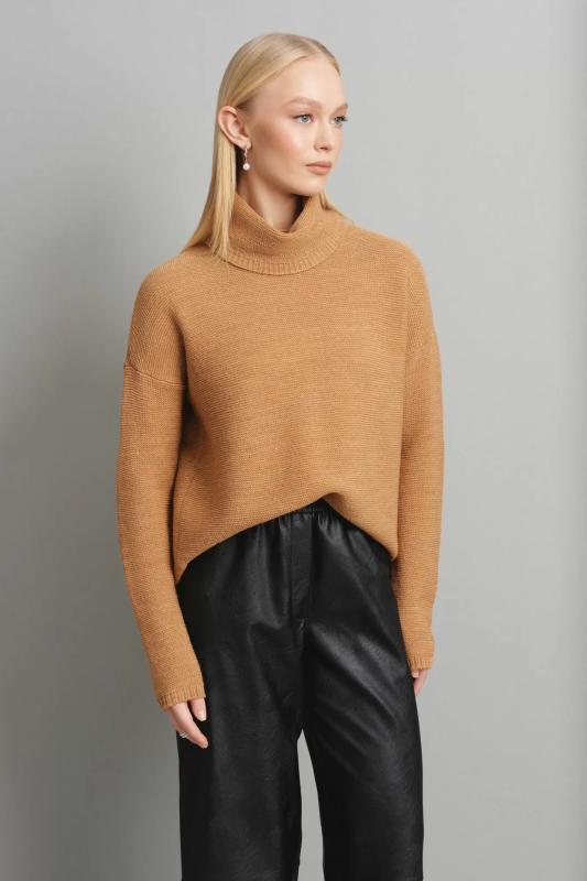 Женская водолазка, джемпер полуприлегающего силуэта с воротником-стойкой и длинным втачным рукавом. Полотно - однотонная "