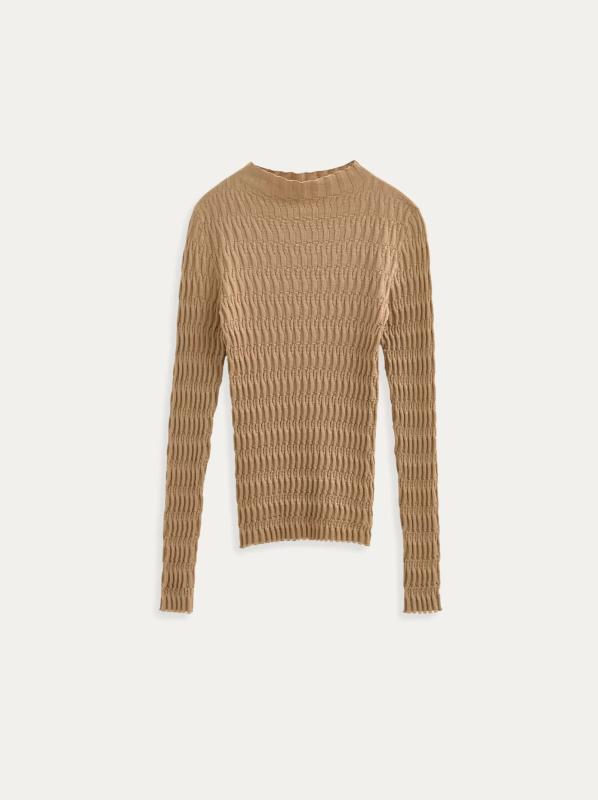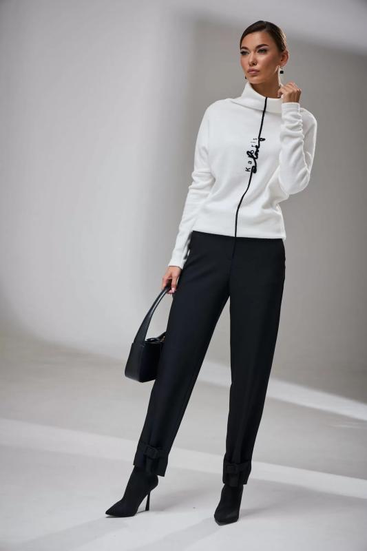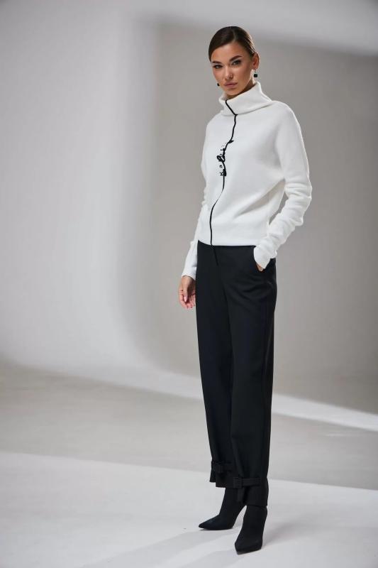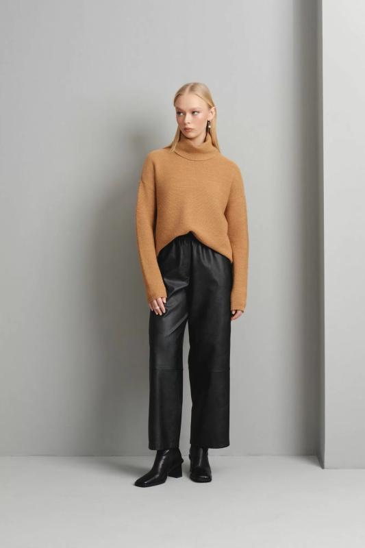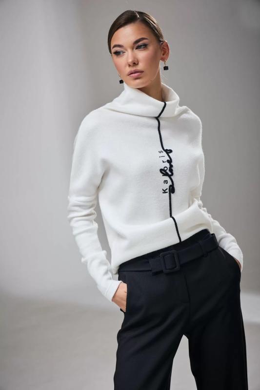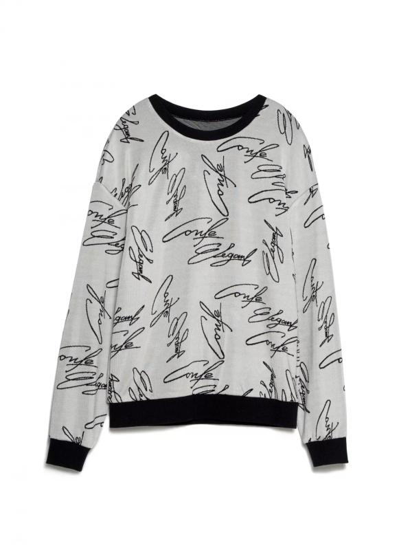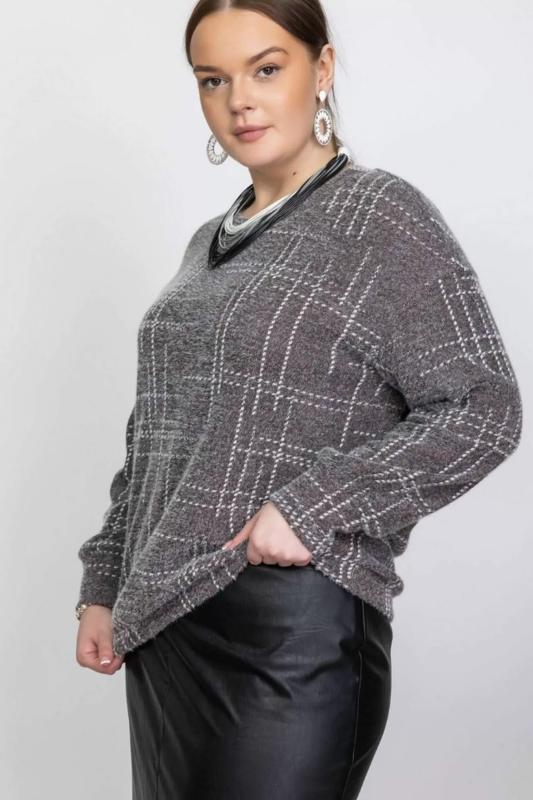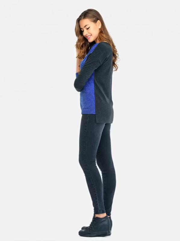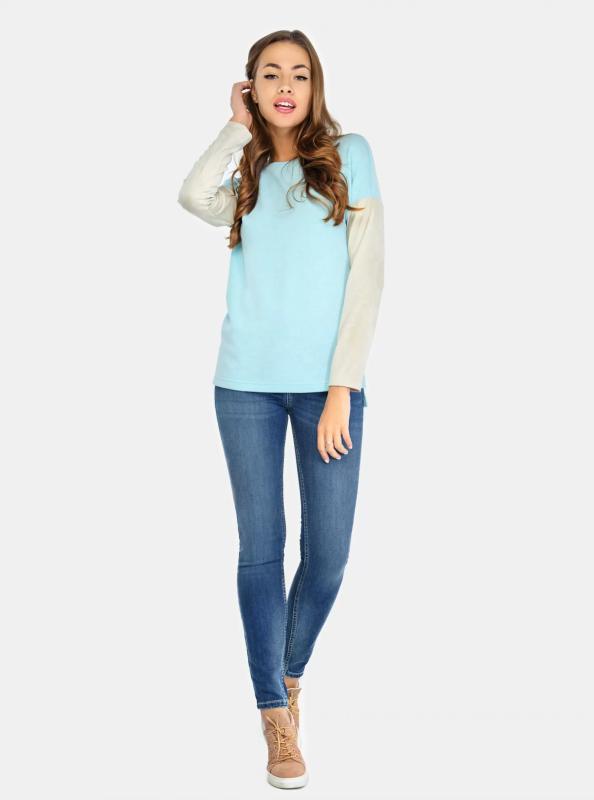 Джемпер из приятного по тактильным ощущениям полотна предлагается в модном сочетании с материалом под "