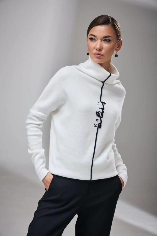 Трикотажный женский джемпер из тонкого полотна, добавляющего дополнительную легкость и комфорт в носке. Изделие предлагает гармоничное сочетание цветов, выгодно подчеркнутых остромодным ассиметричным силуэтом. Спущенная линия плеча, низ, фигурной формы и удобная длина призваны дать женщине прекрасное решение для любого образа. Комфортное и обволакивающее полотно достаточно простое в уходе и устойчивое в носке, прекрасно держит форму. Создать современный look на каждый день помогут джинсы или леггинсы Conte, а также классические брюки.