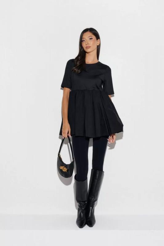 по своим свойствам повторяет натуральный шелк и дарит легкость, нежность и абсолютный комфорт на протяжении всего дня. · круглый вырез горловины · свободный силуэт · длинные рукава с манжетами · приспущенное плечо · Silk touch viscose · не требует особого ухода · сохранение цвета и формы после многочисленных стирок · оригинальный и запоминающийся дизайн для повседневного гардероба. Состав: район 68%, вискоза 28%, эластан 4%