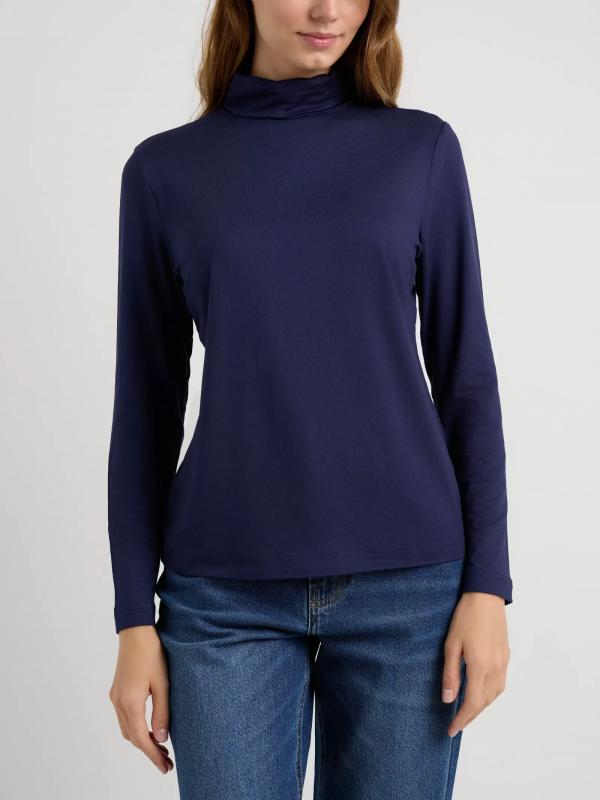 Базовая водолазка из мягкой вискозы с воротником-стойкой займет достойное место в повседневном гардеробе современной девушки: водолазка прекрасно сочетается с джинсами, брюками и юбками. · высокий воротник-стойка · длинные рукава · прилегающий силуэт · металлическая пластинка с логотипом бренда · плотный эластичный трикотаж · высокое содержание вискозы · сохранение формы и цвета после многочисленных стирок · не требует особого ухода · лаконичный дизайн для базового гардероба.
