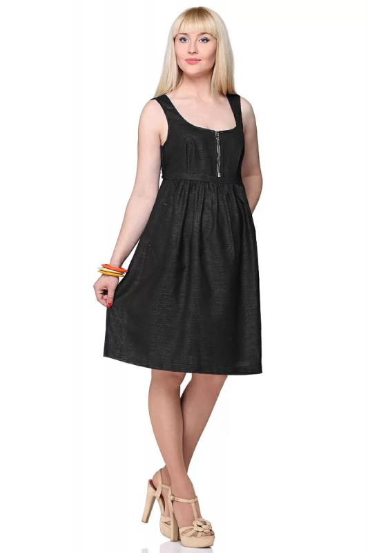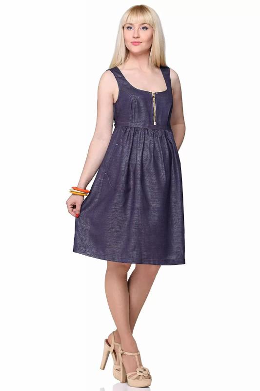 Платье без воротника, без рукавов. Застежка на тесьму-молнию в среднем шве лифа переда. Платье отрезное выше линии талии, со сборкой по переду. На нижней детали переда на уровне линии бедер расположены прорезные карманы. Спинка со средним швом, съемным поясом. Силуэт: Полуприлегающий, А - образный Платье из неэластичной ткани в одной цветовой гамме, обтачки горловины из отделочной ткани контрастной расцветки. Комплектация: Платье без подкладки Длина изделия: 86 см (соотв. размеру)