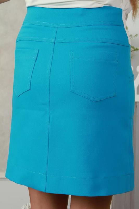 Джинсовая юбка с карманами классического кроя, выполнена из мягкого джинса с эластаном. В поясе вставка из трикотажного вискозного полотна. Длина юбки: р.44-48 - 46см, р.50-54 - 47см